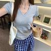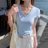 V-neck Design Slim Short-sleeved T-shirt for For Women In Summer New Slim and Versatile Solid Color Simple Top