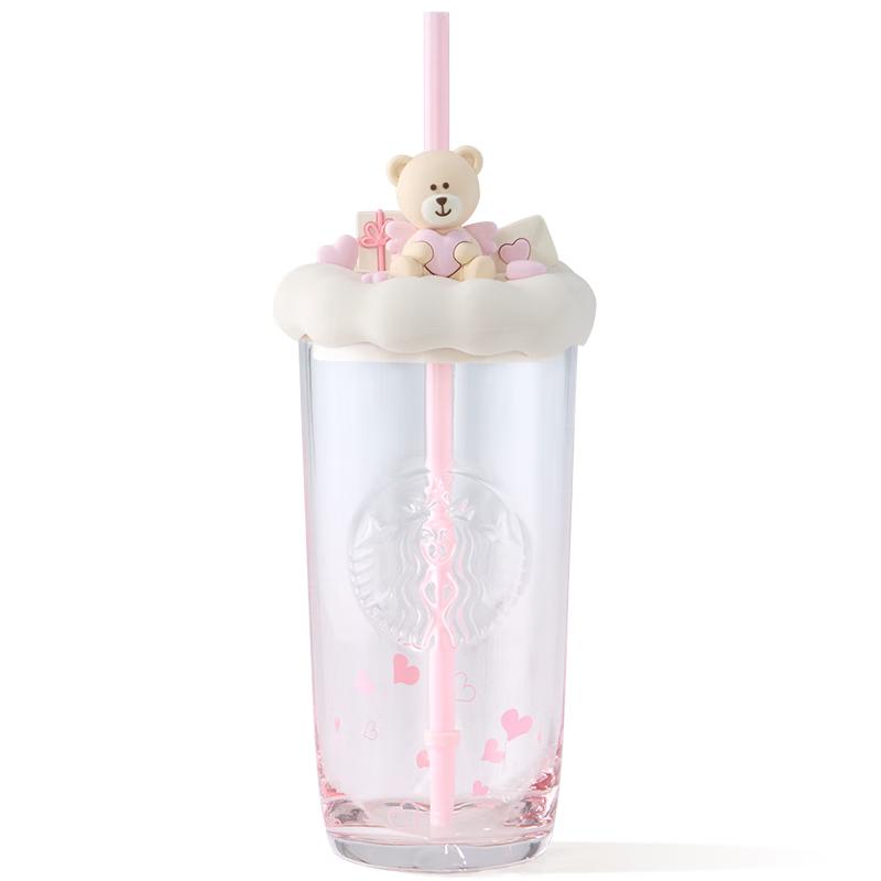 Pahar Tumbler Starbucks cu pai din sticlă în formă de inimă