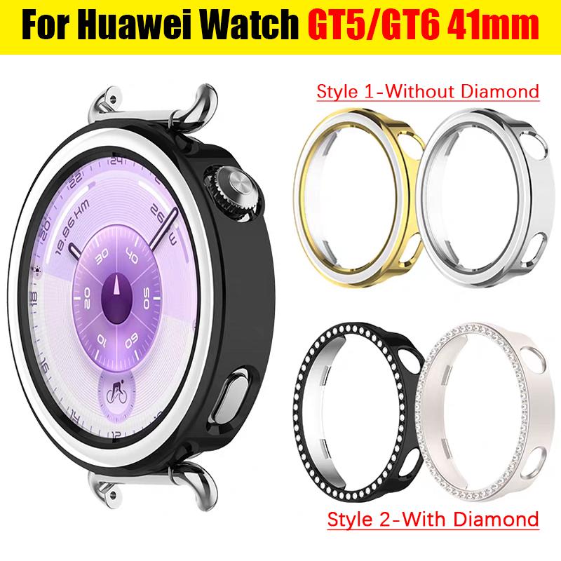 Hollow Case For Huawei Watch GT6 41MM/GT5 41MM Protective Hard and Durable PC Cover With Plastic Diamond Decoration Watch Shell
