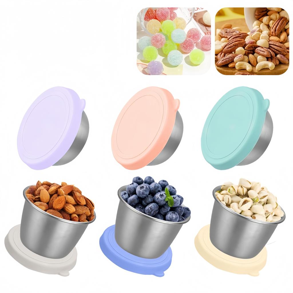 6pcs/set Stainless Steel Snack Container Bowl Salad Dressing Box With Lids 50/70ML For Picnics,barbecues,office Lunches,catering