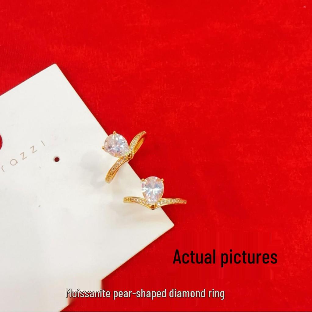 Moissanite Pear-Shaped Diamond Ring - Women's Elegant Fashion Gift