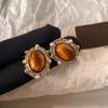 Maillard Silver Needle Tiger Eye Pearl Retro Stud Earrings for Women