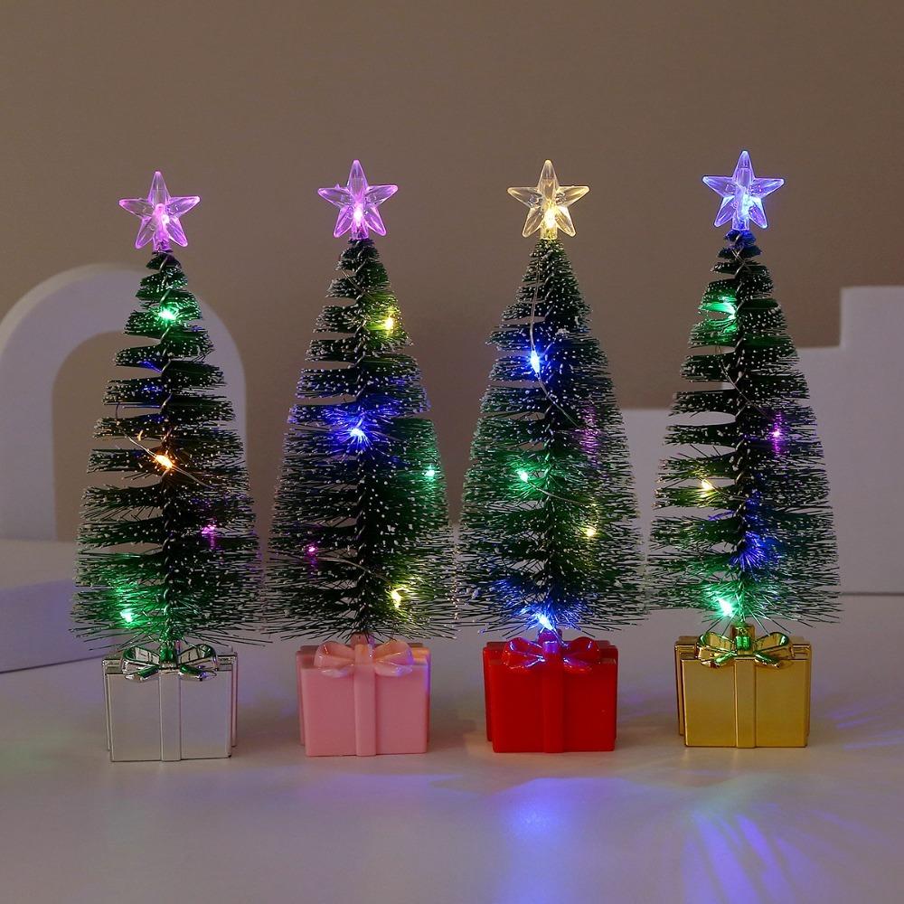 4pcs Funny LED Candle Christmas Night Light Pine Tree Plastic Xmas Tree Candle Lamps Luminous Ornament Desktop Decor