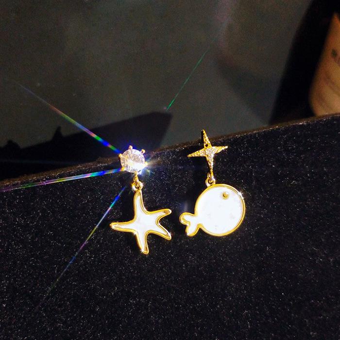 Cute Student Asymmetrical Earrings Simple Little Whale Face Thin Earrings Starfish Stud Earrings Women'S Earrings