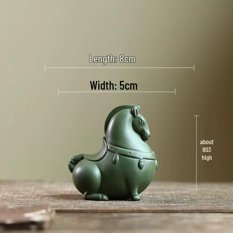Yixing Zisha Green Horse Tea Pet Ornament for Wealth and Success