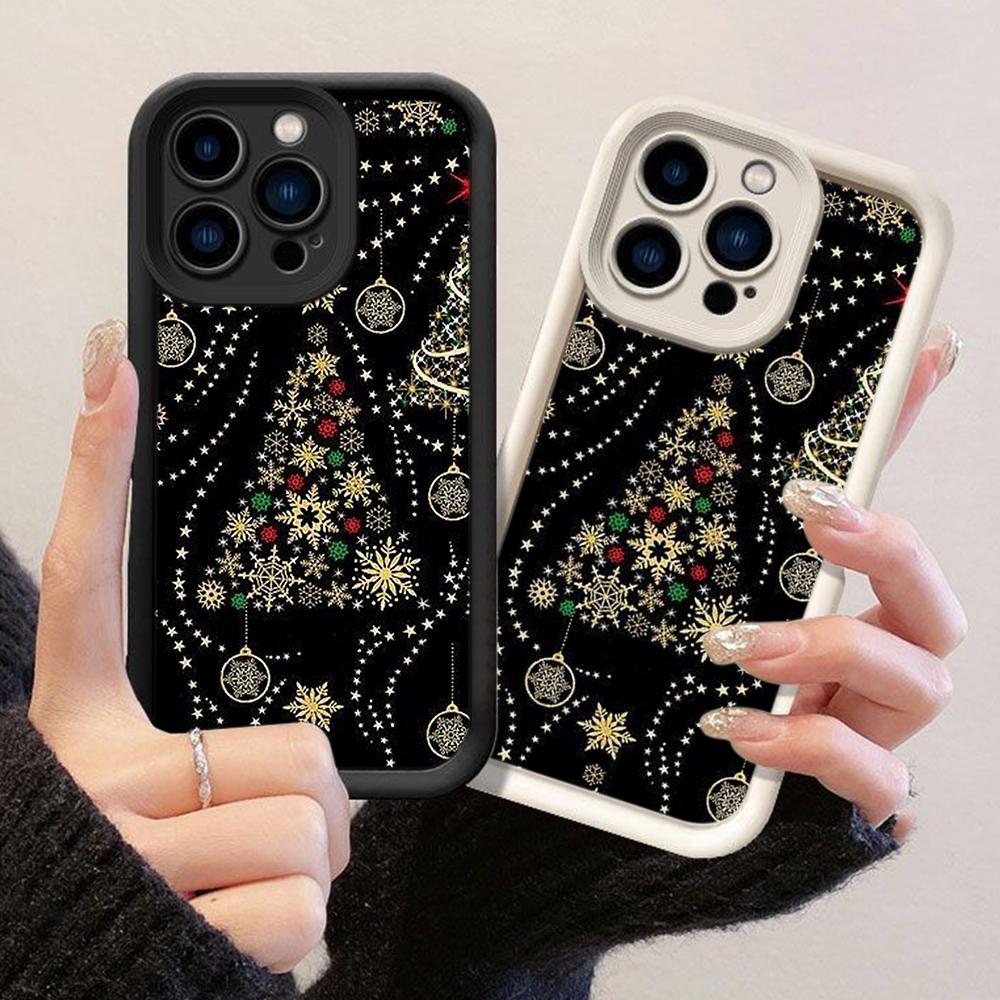 JT135 Christmas Black Golden Snowflake Tree for iPhone 17 16 15 Pro Max Samsung S26 S25 Ultra A17 A16 A07 A56 Xiaomi 15T Redmi 15c 14c 13C Soft Case