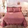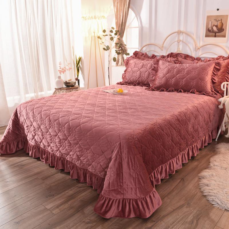 Warm Winter Crystal Velvet Quilted Bedspread with Lace Edge, Cotton-Padded, Double-Sided, Non-Slip Tatami