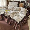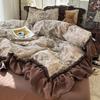 French Retro Lace Linen Bedding Set: Skin-Friendly Duvet Cover & Fitted Sheet