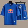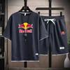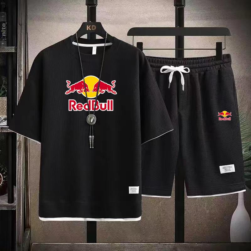 2026 Men's Summer New Style Waffle Short Sleeve Shorts Red Bull Printed Set