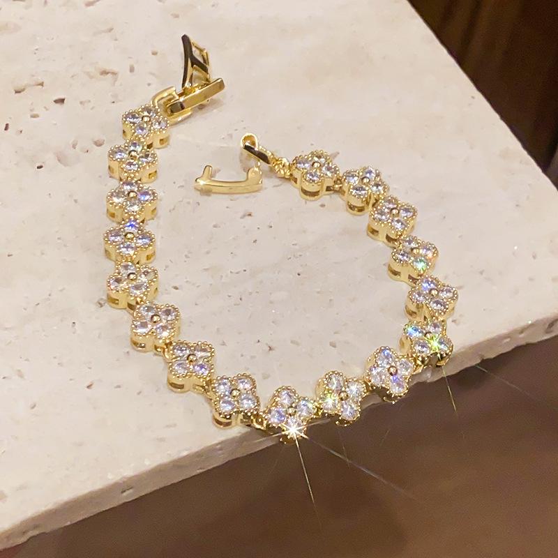 Brățară cu Flori din Zircon placată cu Aur de 14K: Bijuterii de modă vintage, rafinate, de lux pentru femei.