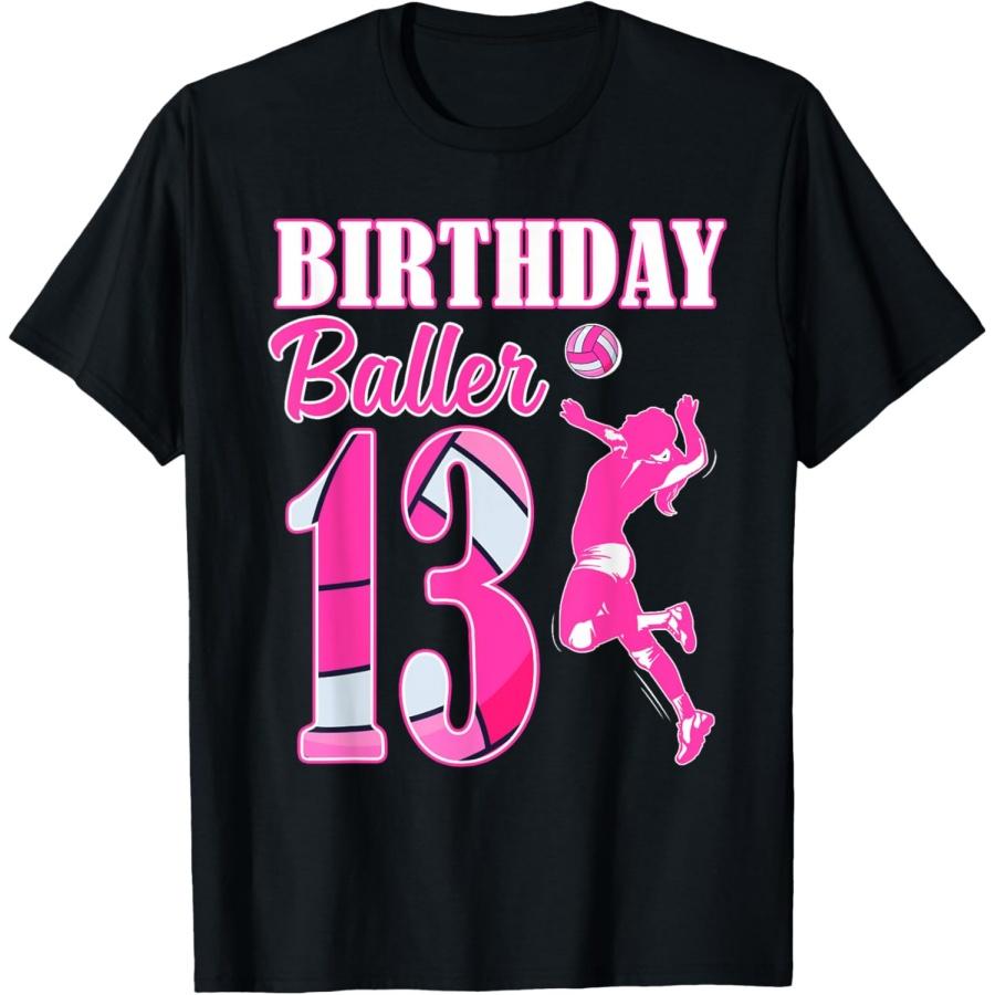 13th Birthday Volleyball Themed 13 Year Old Birthday Baller T-Shirt(1)