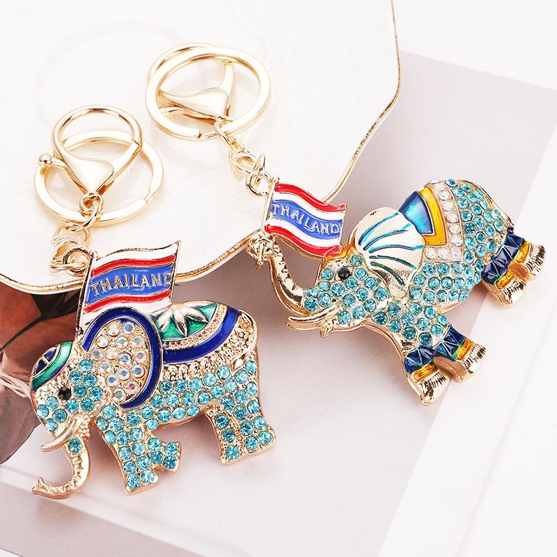 Rhinestone Elephant Keychain Souvenir - Thailand Bangkok Charm