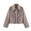 Women's Cropped Brown Faux Fur Coat Lapel Warm Winter Jacket Casual Streetwear