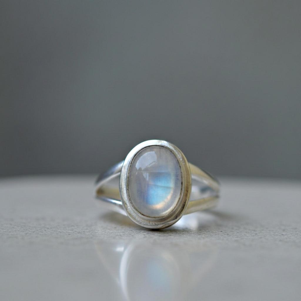 Minimalist Rainbow Moonstone Statement Ring, 925 Solid Sterling Silver Jewelry, Handmade Bohemian Ring