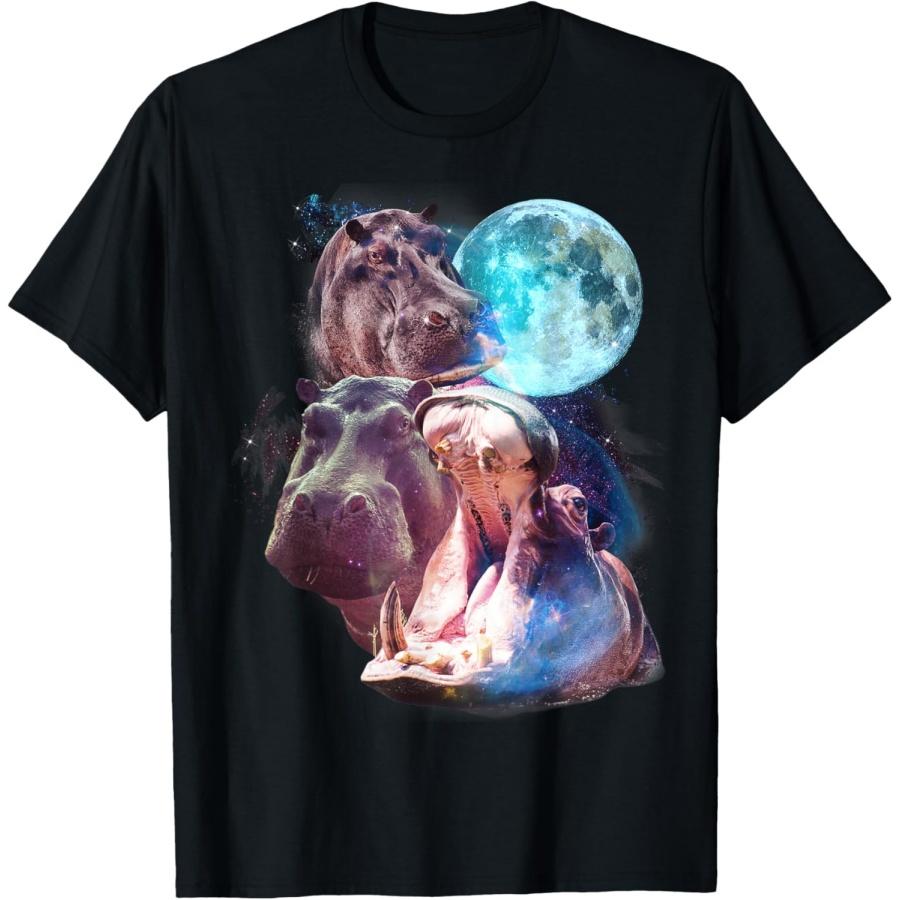 3 Moon Hippo Funny Hippopotamus Graphic Animal Lover Humor T-Shirt