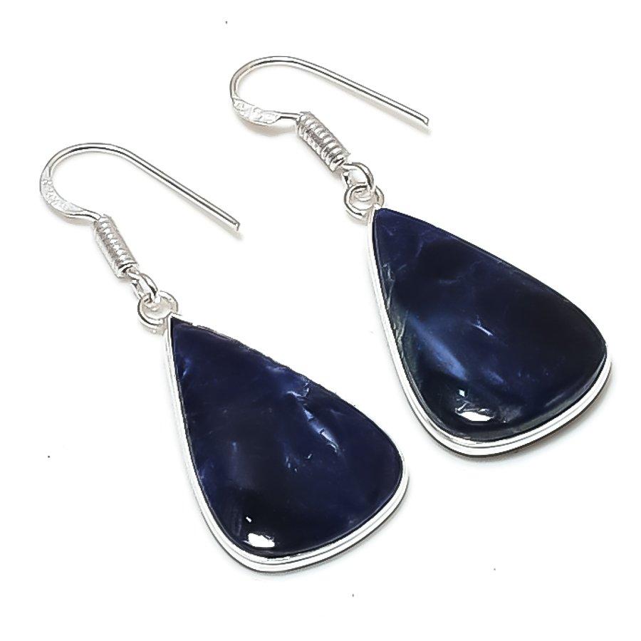 Natural Sodalite Gemstone 925 Sterling Silver Jewelry Earring 1.77" AEE-11075