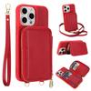 For iPhone 15 Pro Case RFID Blocking Zipper Wallet Leather + TPU Phone Cover with Shoulder Strap