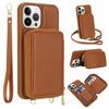 For iPhone 13 Pro Case RFID Blocking Zipper Wallet Leather + TPU Phone Cover with Shoulder Strap
