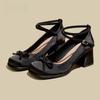 Satin bow thick heel Mary Jane shoes fairy fairy style small man height increase light mouth single shoes high heel women's shoes
