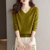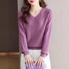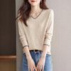 Tricou cu mânecă lungă de toamnă Bluză de bază pentru femei Stil străin actualizat Reduce vârsta Croială relaxată Top Pulover tricotat cu decolteu în V