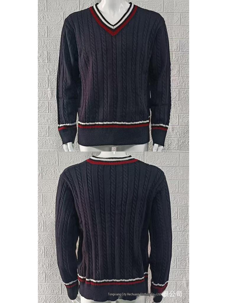 Men's Slim-Fit V-Neck Color-Block Pullover Knitted Sweater - Autumn/Winter Street Style