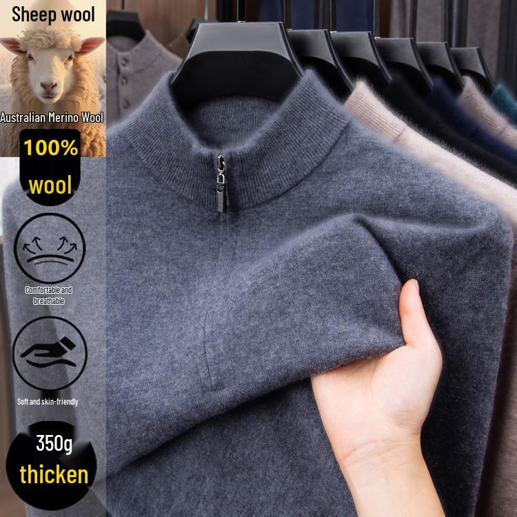 Stay cozy and stylish during the colder months with this men's warm wool sweater, featuring a sleek half-high collar and a convenient zipper for easy wear. Crafted from a thick knit, this base layer provides excellent insulation while maintaining a slim fit for a modern silhouette. The long sleeves offer additional coverage and warmth, making it a perfect addition to your winter wardrobe. Available in a versatile solid color, this sweater can be effortlessly paired with your favorite outfits for a refined, put-together look.