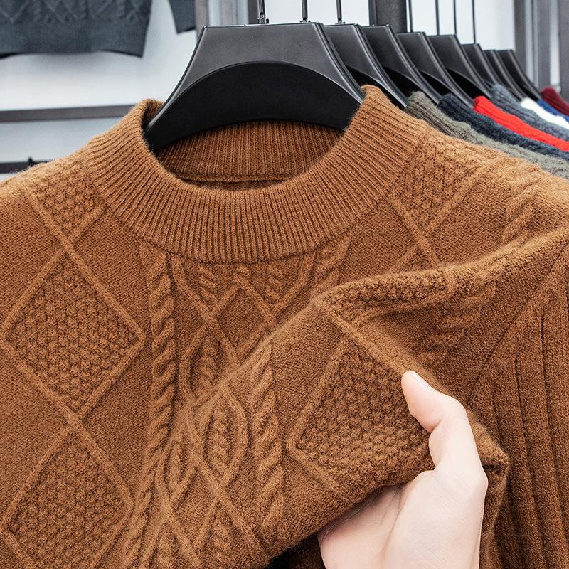 Experience ultimate warmth and style with this thick, loosely fitted winter sweater designed for men of all ages. Featuring a fashionable jacquard knit pattern, it is crafted from high-quality acrylic material to keep you cozy during the cold months. The half-high collar adds a touch of sophistication, while the long sleeves provide extra coverage. This versatile piece includes a soft chemical fiber blended material for added comfort, making it an essential addition to any winter wardrobe.
