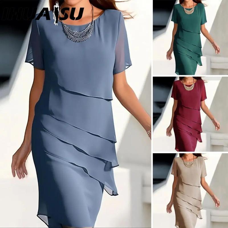 IHUASU Moda damă vară primăvară culoare uni imprimeu mâneci scurte decolteu rochii casual