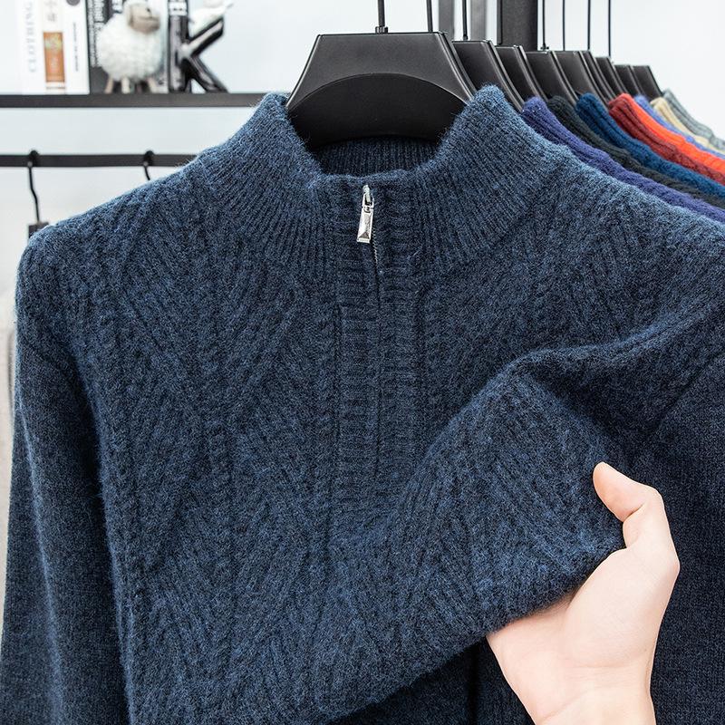 Men's Autumn/Winter Zipper Knit Sweater: Thick, Warm, Half-high Collar, Casual Style