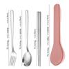 Set de tacâmuri portabile din oțel inoxidabil, 4 piese, pentru călătorii în aer liber