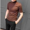 Men's Cross-Stitch Short Sleeve Knitted Sweater T-Shirt, Half-High Collar, Autumn/Winter Base Layer Top