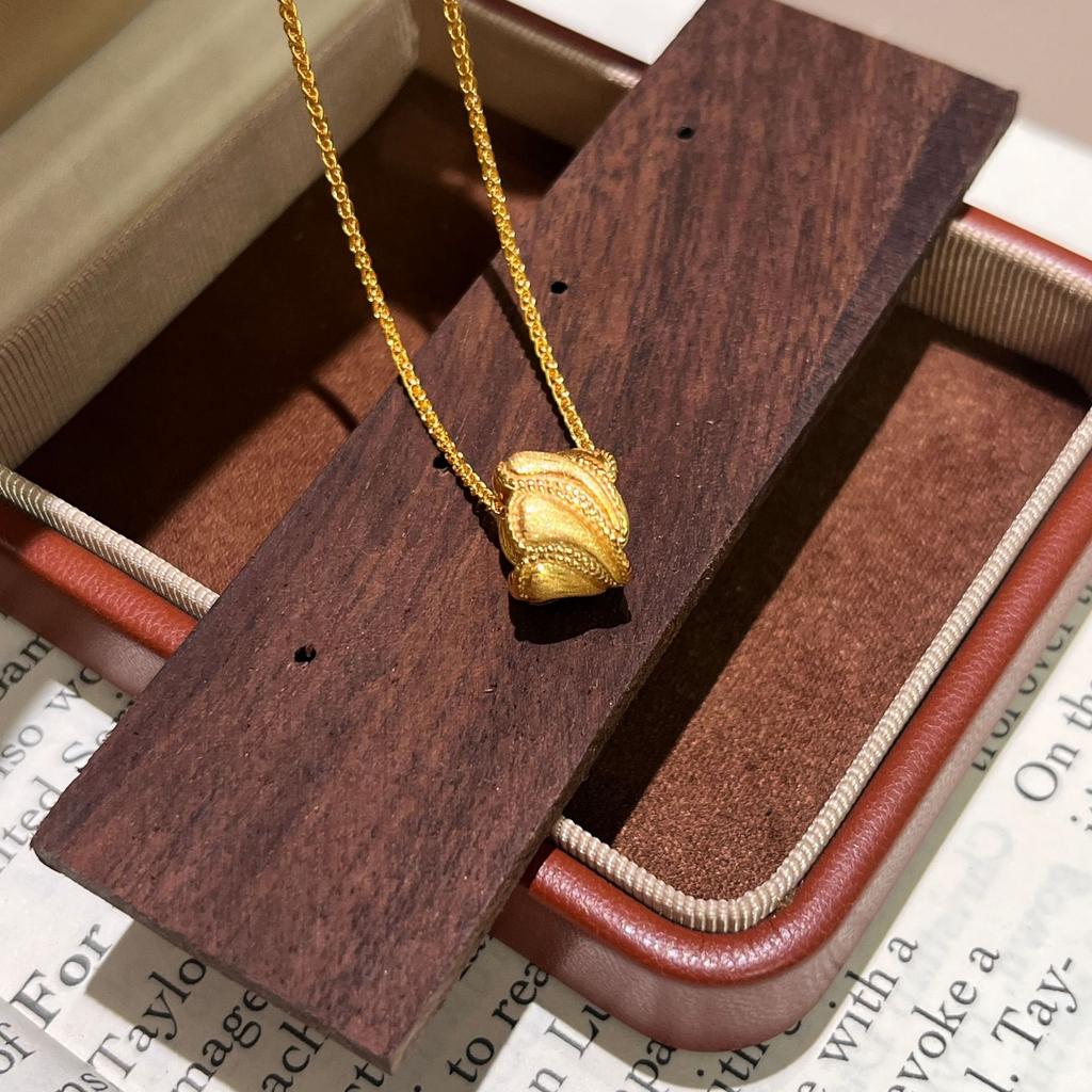 Gold Passepartout Small Waist Necklace Women'S Light Luxury Retro Brushed Transfer Bead Pendant Clavicle Chain