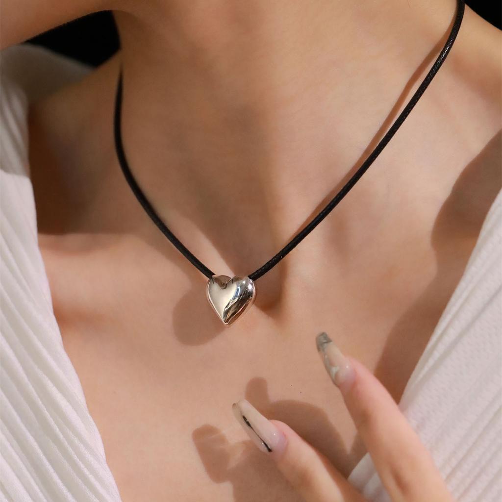 Cold Wind Black Rope Love Pull Necklace Women'S Simple Niche Design Peach Heart Sweater Chain