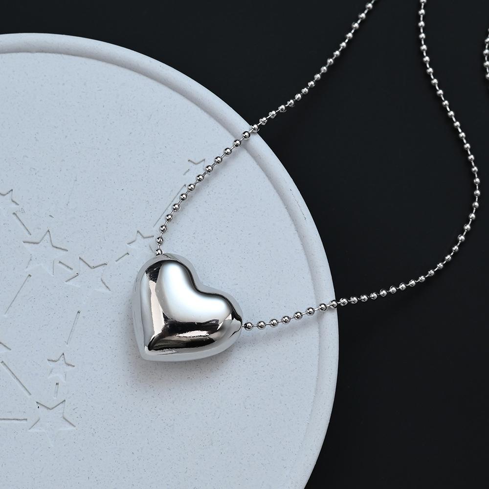 Premium Sense Light Luxury Autumn And Winter Temperament Smooth Love Necklace Heart-Shaped Round Bead Collarbone Chain Neck Chain Generation