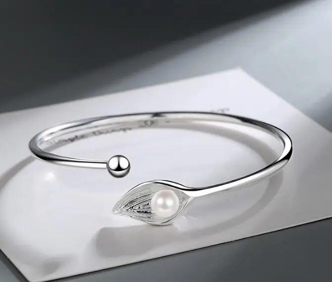 New Arrival Female Stamp Silver Color Leaves Pearl Bracelet for Women Girl Wedding Gift Pulseira Feminina