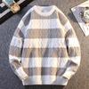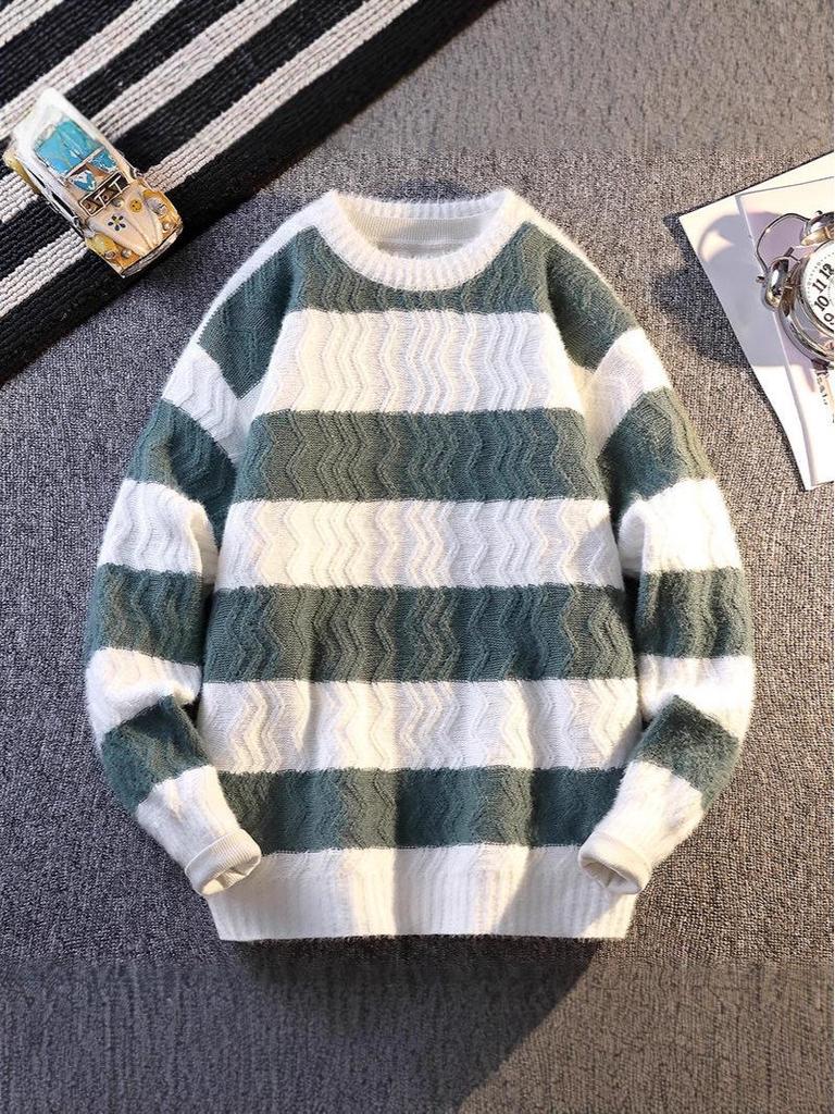 2025 Autumn/Winter Men's Korean Style Color Block Striped Loose Knit Sweater