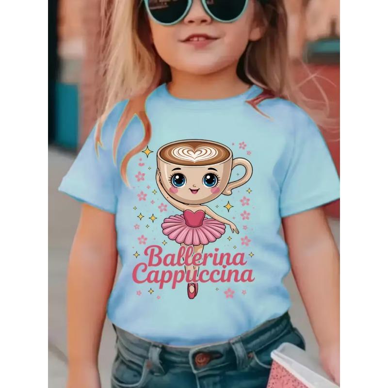 Ballerina Cappuccina Girls T-Shirt Italian Brainrot Funny Child T-Shirts Summer Fashion Short Sleeve Tops for Kids Cute Clothing