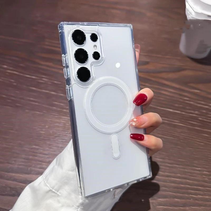 Husă magnetică Magsafe pentru Samsung Galaxy S25 Ultra S24 S23 S22 Plus S21 FE Încărcare wireless Rezistentă la șocuri Capac transparent