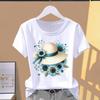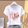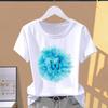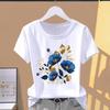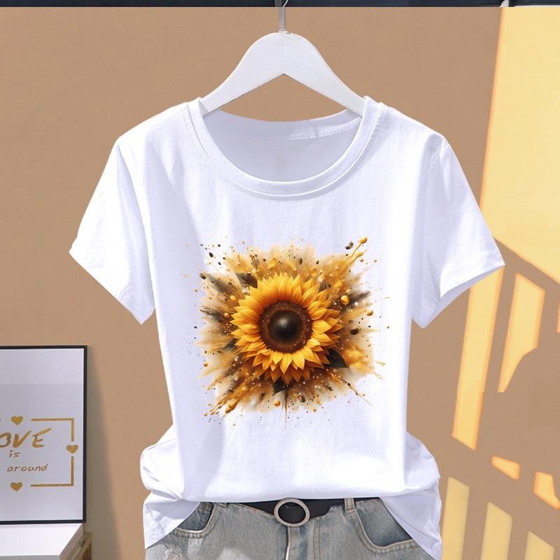 (Asian Size) watercolor flower cute Casual T Short Sleeve T-shirts Women's Top Print O-neck Fashion Female Clothing Graphic Tee