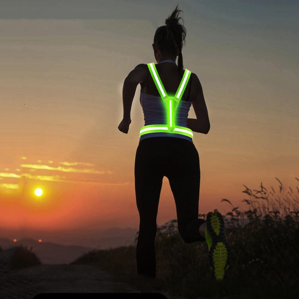 LED Running Vest USB Rechargeable Reflective Cycling Security Vest Adjustable Night Running Vest High Visibility for Kids Adults