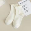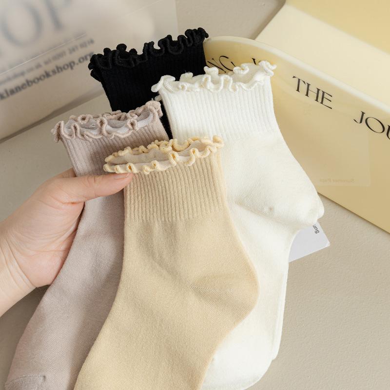 5/10 Pairs Comfortable Casual and Versatile Women's Mid Calf Socks for Spring and Summer Solid Color Lace Trimmed Socks Breathable Cotton Socks