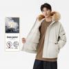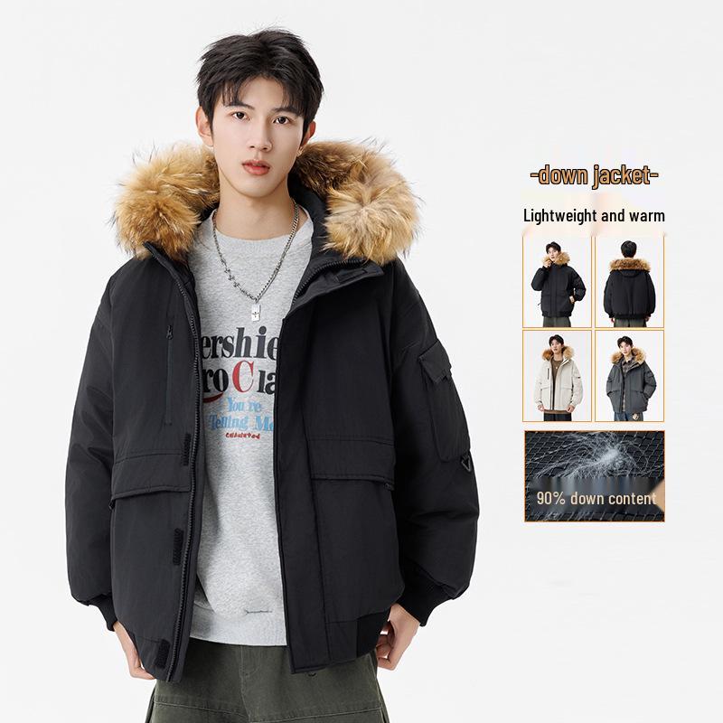 Experience ultimate warmth and style with this thickened winter down jacket featuring a luxurious fur collar. Designed for both men and women, this insulated parka is filled with 90% white duck down, ensuring superior comfort even in the coldest weather. Its loose fit and stand neckline offer a relaxed yet elegant look, while the solid pattern and polyester material provide durability and a sleek appearance. The fur collar is made from a chemical fiber blend, adding a touch of sophistication to this cozy hooded outerwear. Perfect for braving the winter chill in style.