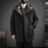Stay stylish and warm this winter with our men's hooded windproof down jacket, designed in the 2025 winter style. This mid-length outerwear is insulated with thickened white duck down, providing exceptional warmth and comfort. The jacket features a loose fit, making it perfect for layering, and a stand neckline to shield you from chilly winds. Crafted from durable polyester with a solid pattern, it's both functional and fashionable. The fur detailing is made from quality polyester, adding a touch of luxury to your winter wardrobe. Ideal for those looking for a blend of style, comfort, and practicality.