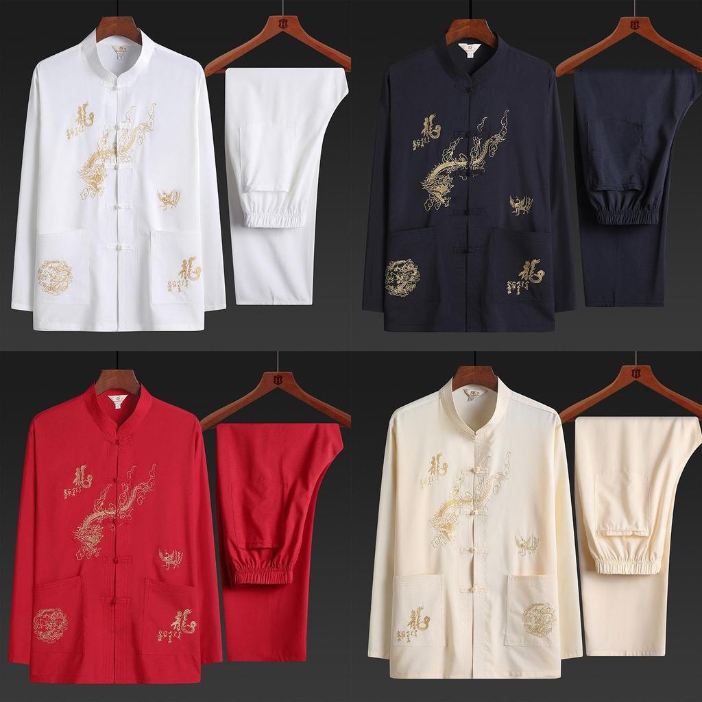Middle Aged And Elderly Men's Hanfu Long Sleeved Suit Shirt Tai Chi Suit