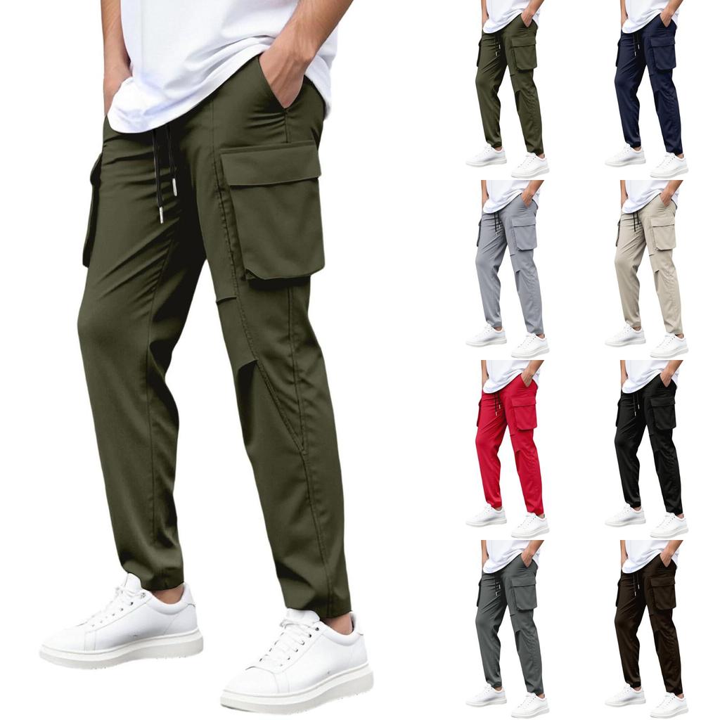 Pantaloni de drumeție pentru bărbați, cargo, cu buzunare multiple și șnur, cu croială dreaptă, casual