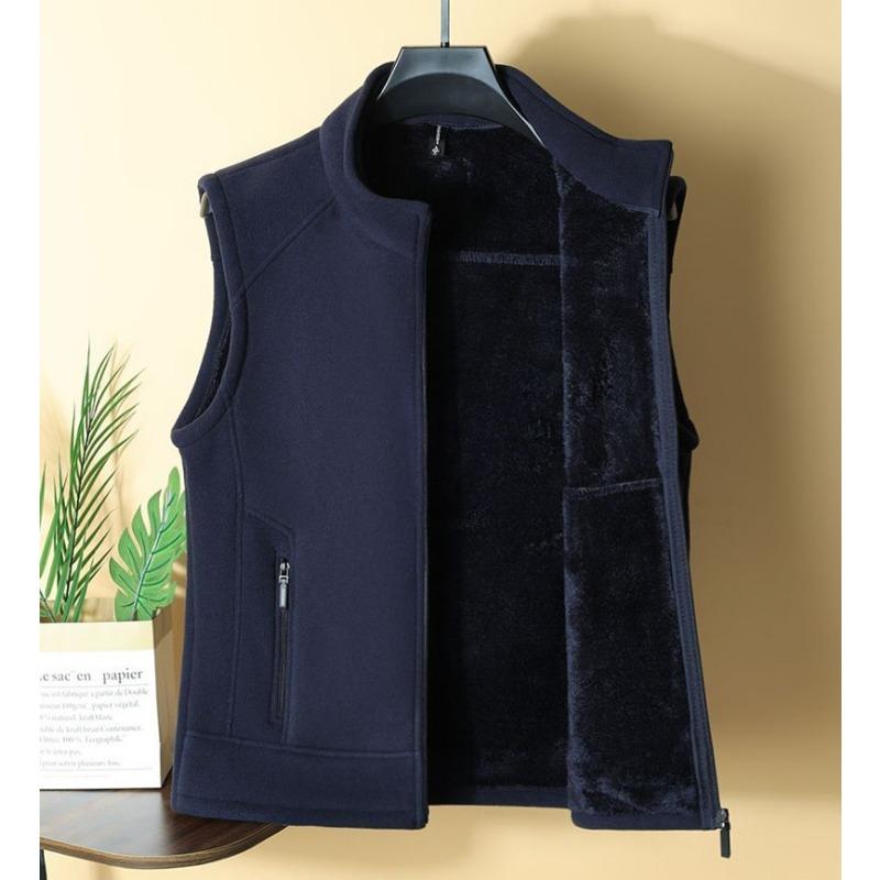 Solid Color Zipper Cardigan Pocket Vest Casual Men's Autumn and Winter Stand Collar Loose Sleeveless Jacket Top