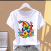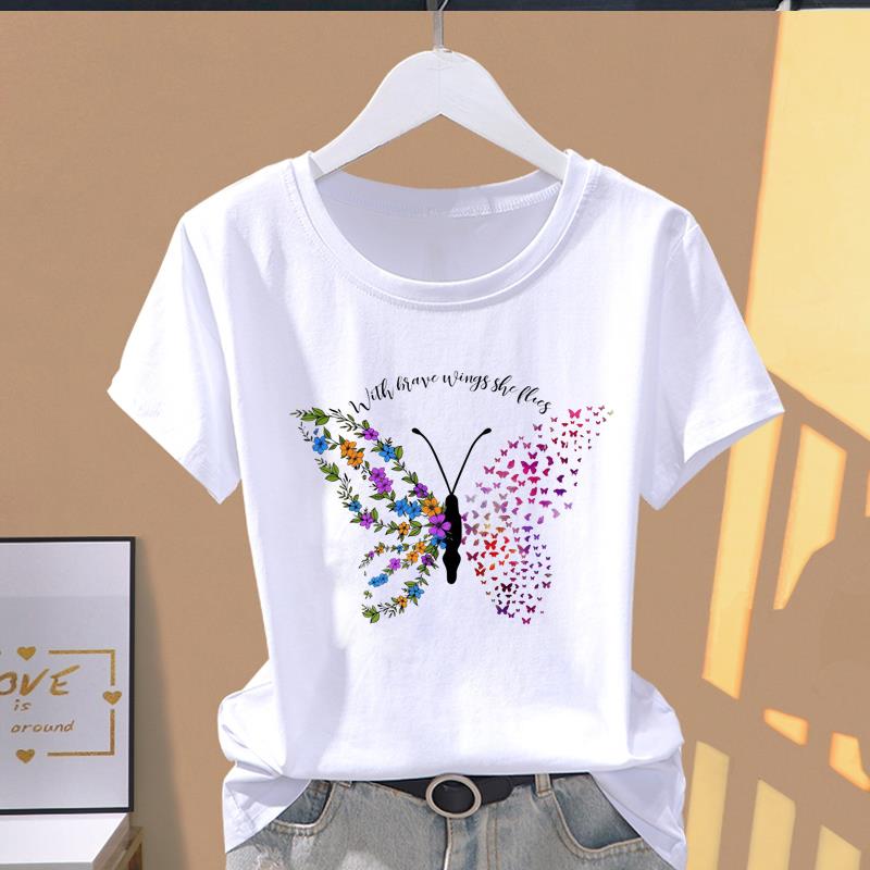 (Asian Size) Short Sleeve T-shirts Women's Top T Clothing Print butterfly style 90s Fashion Female Casual O-neck Graphic Tee