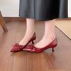 High-heeled bows are versatile and thin, academic style, one-pedal single shoes, retro temperament, shallow mouth, female pointed head.