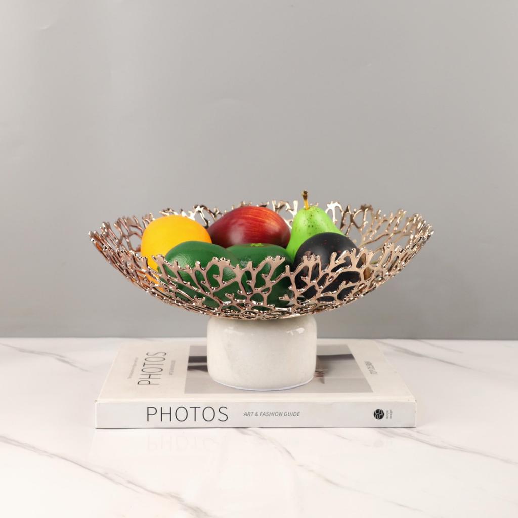 Tavă Metalică Goală Suport Disc Coral cu Bază de Marmură Placă Rotundă Metalică pentru Fructe Bol Aurit Accesorii Decorațiuni Casă