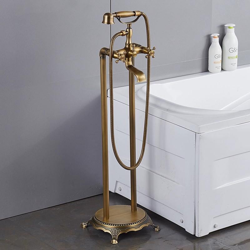 Antique Bronze Bathroom Bathtub Faucet + Handheld Shower Free Standing Luxury BathTub Faucet Mixer Taps Floor Mounted Bathtub